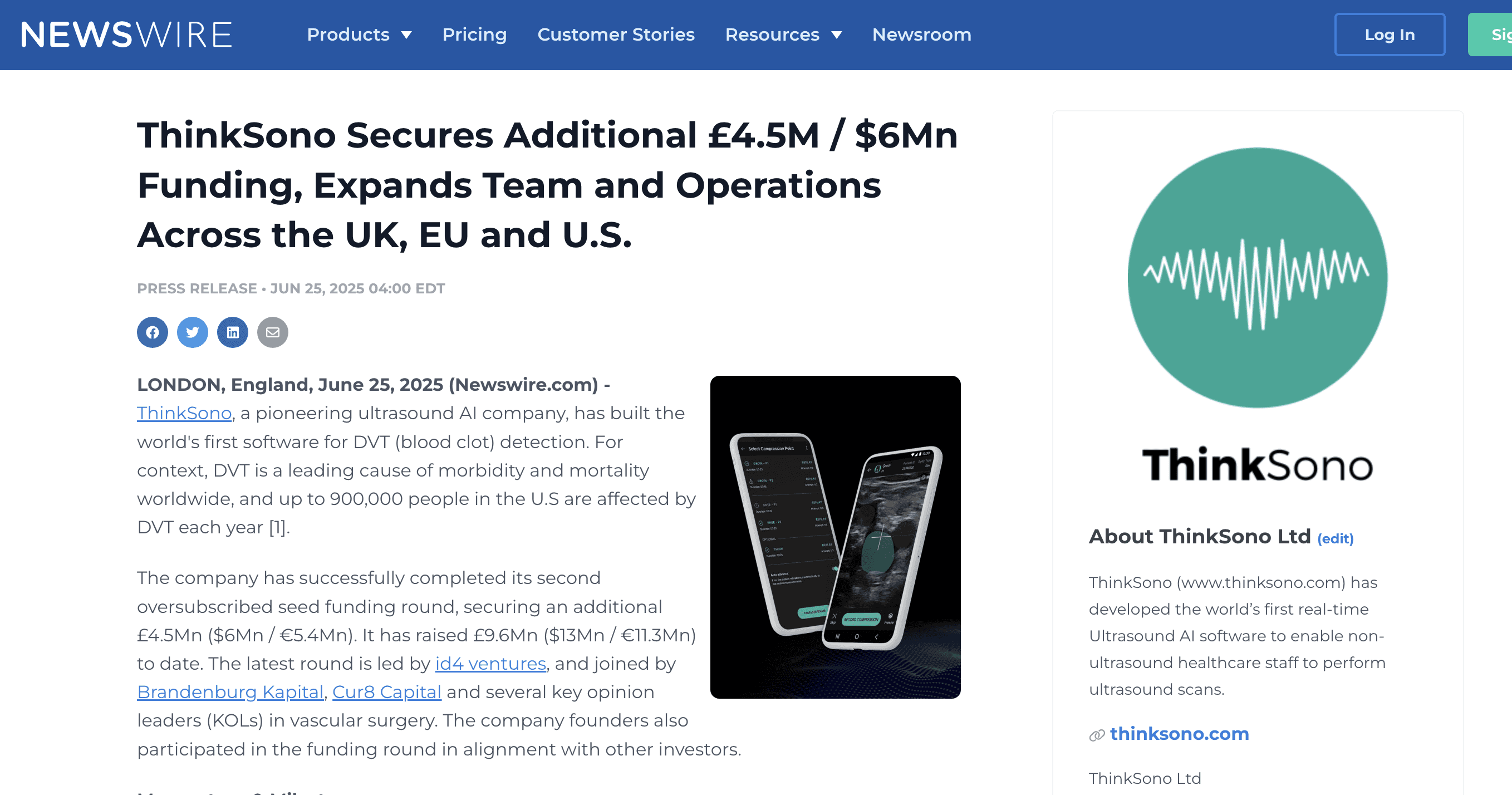 ThinkSono Secures Additional £4.5M / $6Mn Funding, Expands Team and Operations Across the UK, EU and U.S.